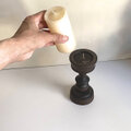 ホウの木をろくろで削り、キャンドルスタンドに仕上げました。