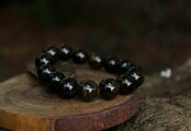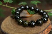 深みのある、ピスタチオのようなグリーンが非常に美しいAAA級の超レア、ナチュラルエピドートの13ミリ大玉のみを使用したブレスレットです。