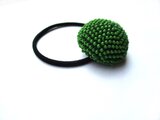 素材:丸小ビーズ、合成皮、ヘアゴム、綿