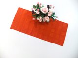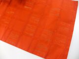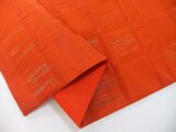 ■新品の帯をリメイクしました。贈り物にも最適です。朱色地に格子織柄の品のある帯地です。高級織物「吉野間道」です。