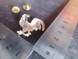 縦横 32mm30mm 立体プレスモチーフ厚み4mm モチーフ金属自体の厚み0.5mm 溶接した針長さ8mm 針の太さ0.9mm