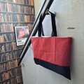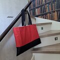 大人っぽいレッド×ブラックの切替トートバッグが出来上がりました。
