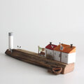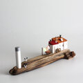 流木、ねじ・釘(赤錆加工)、ホワイトウッド(欧州スプルース、ドイツトウヒなど)、ステイン、ペンキ等で製作。ヤスリでダメージ感を演出しています。「潮騒とカモメの鳴き声、風の音」を感じていただければ幸いです。