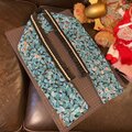 着物 リメイク 重ね衿 伊達襟|パール&フリル|和洋折衷|翡翠~群青の葉が重なり合うリズミカルな総柄。 E-70