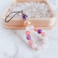 こちらのパワーストーンを組み合わせ、大人可愛いデザインのストラップに仕上げました。