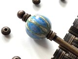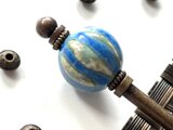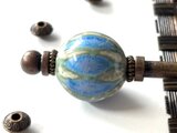 青と緑のメロン型陶器ビーズでかんざしを作りました。