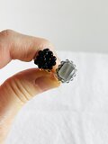 ブラックの方は、粒々と可愛らしいぷっくりビーズを金の糸で立体的になるよう刺繍しました。