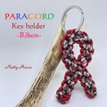 ◆ パラシュートコード、通称パラコードを匠に編上げた「ボックスノット リボン」オリジナルキーホルダーです。