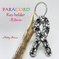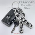 ◆ パラシュートコード、通称パラコードを匠に編上げた「ボックスノット リボン」オリジナルキーホルダーです。