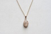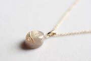 落ち着いたベージュのマーキス型のレジンにゴールドの装飾を施したペンダント。