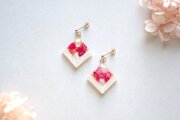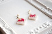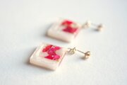 レジンアート スクエアピアス〈囁き貝・ローズピンク〉