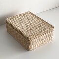 籐の文箱(B5用紙の入る四角い蓋付きバスケット)よろけ編み