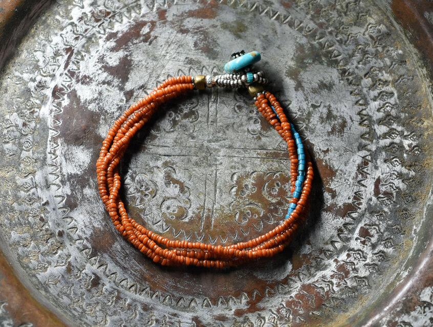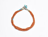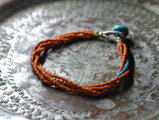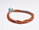 アンティークオレンジ色シードビーズとエメラルドブルーのビーズを4連にしたブレスです。