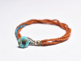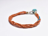 アンティークオレンジ色シードビーズとターコイズブルーホワイトハーツの4連ブレス(ターコイズ留め金)