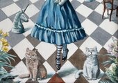 アリスの夢の世界をテーマに、浮かんでくるモチーフをディスプレイするような形で1枚の絵に込めました。