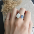美しいミルキーブルーカラー×ネイビーのコントラストが何とも魅力的なフォークリングに仕立てました。