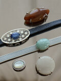 ブラウンカラー アーモンド型のアゲートを帯留に仕立てました。