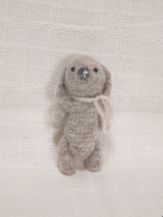 モヘア素材の細い毛糸で小さなウサギを編みました。