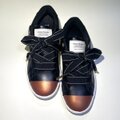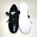 大きなリボン状の靴紐が可愛いバイカラー軽量コートスニーカー(ブラックxエナメルブラック) 22.5cm〜24.5cmのコピー