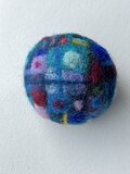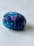 羊毛ニードルフェルトでブルーの羊毛を土台に