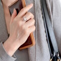 シルバーのリング台の柔らかいラインの花弁にはキュービックがバヴェに入っており、見る角度によって、花びらの見え方が変わるのもこのリングの特徴。