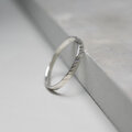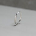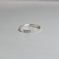 細目なフォルムのリングに斜めに打ち込まれた槌目の表情が特徴的。不均一な凹凸感がミニマルなデザインに温かく個性的な雰囲気をプラス。