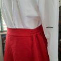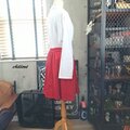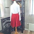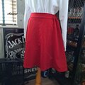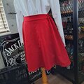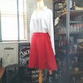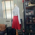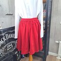 ぜひ目を引くレッドのフレアスカートで気軽にお出かけしてください。