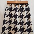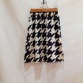 シンプルなフレアースカートシルエットながらも大き目な千鳥柄が無地のトップスなどに合わせやすい使いがっての良いアイテムです。