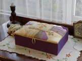 アンティーク布をいろいろと使いクレイジーキルト調で仕上げました。