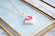 レジンアート スクエアペンダント〈囁き貝・ローズピンク〉