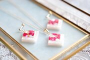 透明のレジンにホワイトシェルとローズピンクに着色されたシェルを沈め、光沢のあるホワイトで囲ったペンダント。