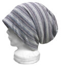 ルーズワッチキャップ◆斜めボーダー柄 コットンリネンニット(ウォッシュ加工) ◇ゆったりサイズ・小顔効果・オールシーズン着用◇
