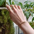 幅4mmの甲丸シルエットが、光をやわらかく受け止め、手首に静かな輪郭を描く。