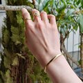 バングルのサイズ調整は変形や破損の原因になりますので、形を保つため、痛く感じるかもしれませんが、手首に食い込ませて付け外してください。