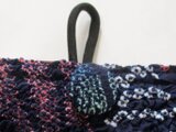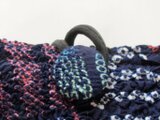 ポーチの口に、ループのッ輪っかと包みボタンを付けて留めるようにしています。