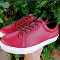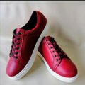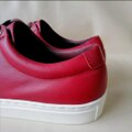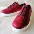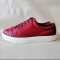カジュアル本革レザースニーカー スーツにも合うシンプルな作りのスニーカーです。レッド系カラー
