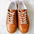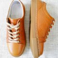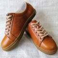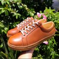 カジュアル本革レザースニーカー スーツにも合うシンプルな作りのスニーカーです。キャメルブラウン系カラー