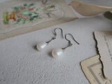 白く発光するような淡水パールとシルバーのヴィンテージピアス。