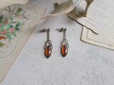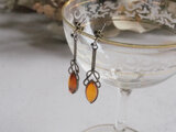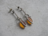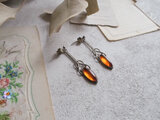 アンバー色のガラスがはめ込まれた、アールデコ様式のヴィンテージピアスです。
