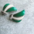 Y638-ヴィンテージイヤリング U.S.A. 1970〜80s Green and White Enamel Paint