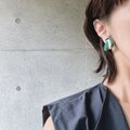 シルバートーンベースにエメラルドグリーン、ホワイトのエナメルペイントされた爽やかな佇まいのあるイヤリング。