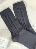 ローゲージでふんわりした履き心地と、滑らかな糸に包まれる温かさ、安心感を表現しました。上品なアラン編みの模様でシンプルでもアクセントのあるデザインに。冷え取りの重ね履き用としてもおすすめです。