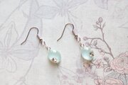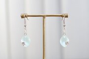 爽やかなブルーのマーキス型のレジンにスワロフスキーを一粒とパール、ブリオンをあしらい、愛らしくも上品なピアスに仕上げました。