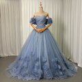 カラードレス ブルーグレー オフショルダー キラキラドレス バラトレーン 編み上げ リボン 結婚式 花嫁