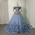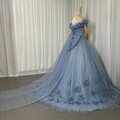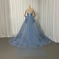 カラードレス ブルーグレー オフショルダー キラキラドレス バラトレーン 編み上げ リボン 結婚式 花嫁