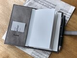 ・もともとハードカバーな野帳に合わせて寸法もジャストサイズで作っております。ノートをセットする際は若干きついかもしれませんが、使っていくうちに革がノートにどんどん馴染んで使いやすくなっていきます。