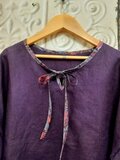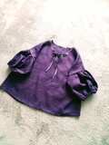 ダークパープルくったりリネン&リバティリボンのパフスリーブブラウス