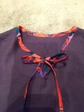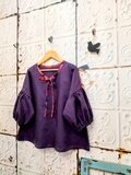 ダークパープルくったりリネン&リバティリボンのパフスリーブブラウスNO2