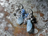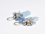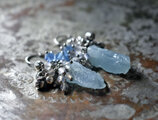 氷柱アクアマリンとたわわなアクアマリン&ラブラドライト&インドシルバー鈴のピアス