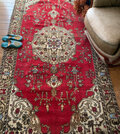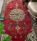 超大判 267×125 深みレッド メダリオン トルコヴィンテージラグ